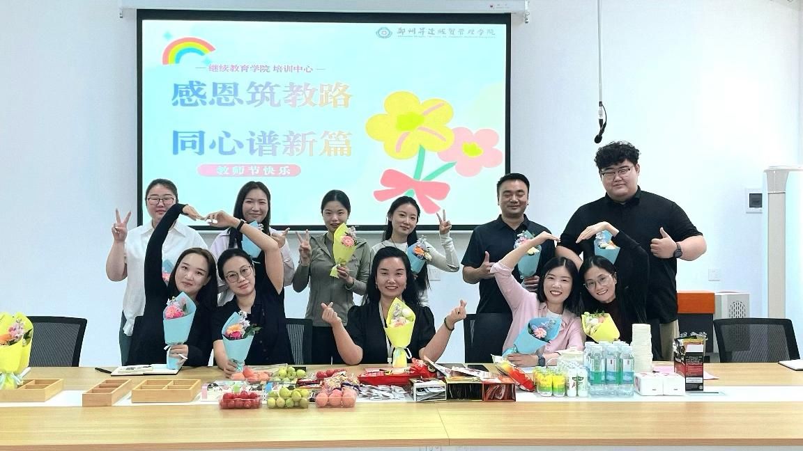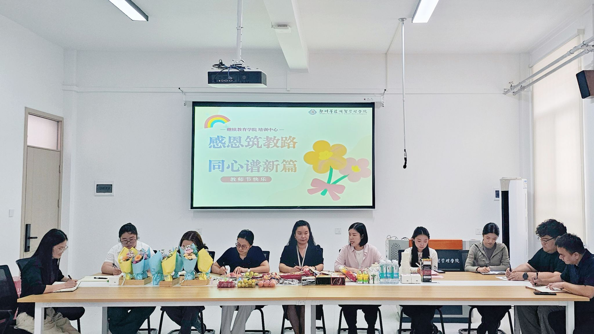 金秋送爽,桃李芬芳。9月10日,在第41个教师节来临之际,继续教育学院举办了以“感恩筑教路,同心谱新篇”为主题的教师节庆祝活动,旨在弘扬尊师重教传统,增强教职工凝聚力,展现学院工作队伍的新风貌。副院长吴娟娟教授、办公室主任林方及全体教职工参加。