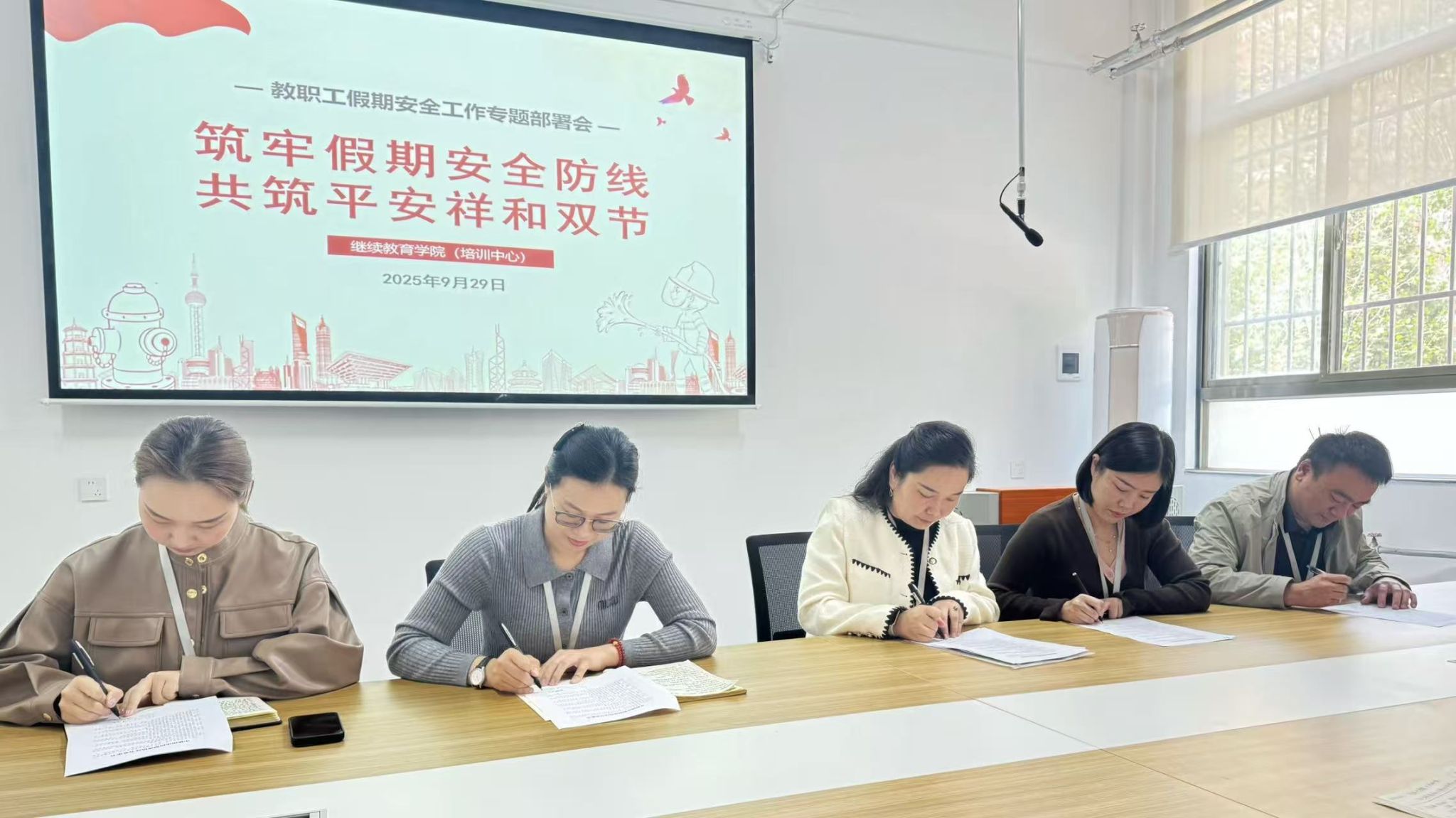 为全面筑牢校园安全防线,营造风清气正、祥和稳定的节日环境,9月29日上午,继续教育学院在112会议室召开校园安全专题工作会。副院长吴娟娟教授、办公室主任林方及全体教职工参加。