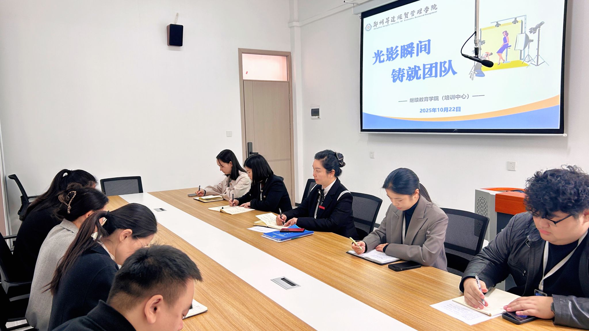 10月22日上午10时,继续教育学院在112会议室组织召开了以“光影瞬间·铸就团队”为主题的工作例会。学院副院长吴娟娟教授、办公室主任林方及全体教职工参加。