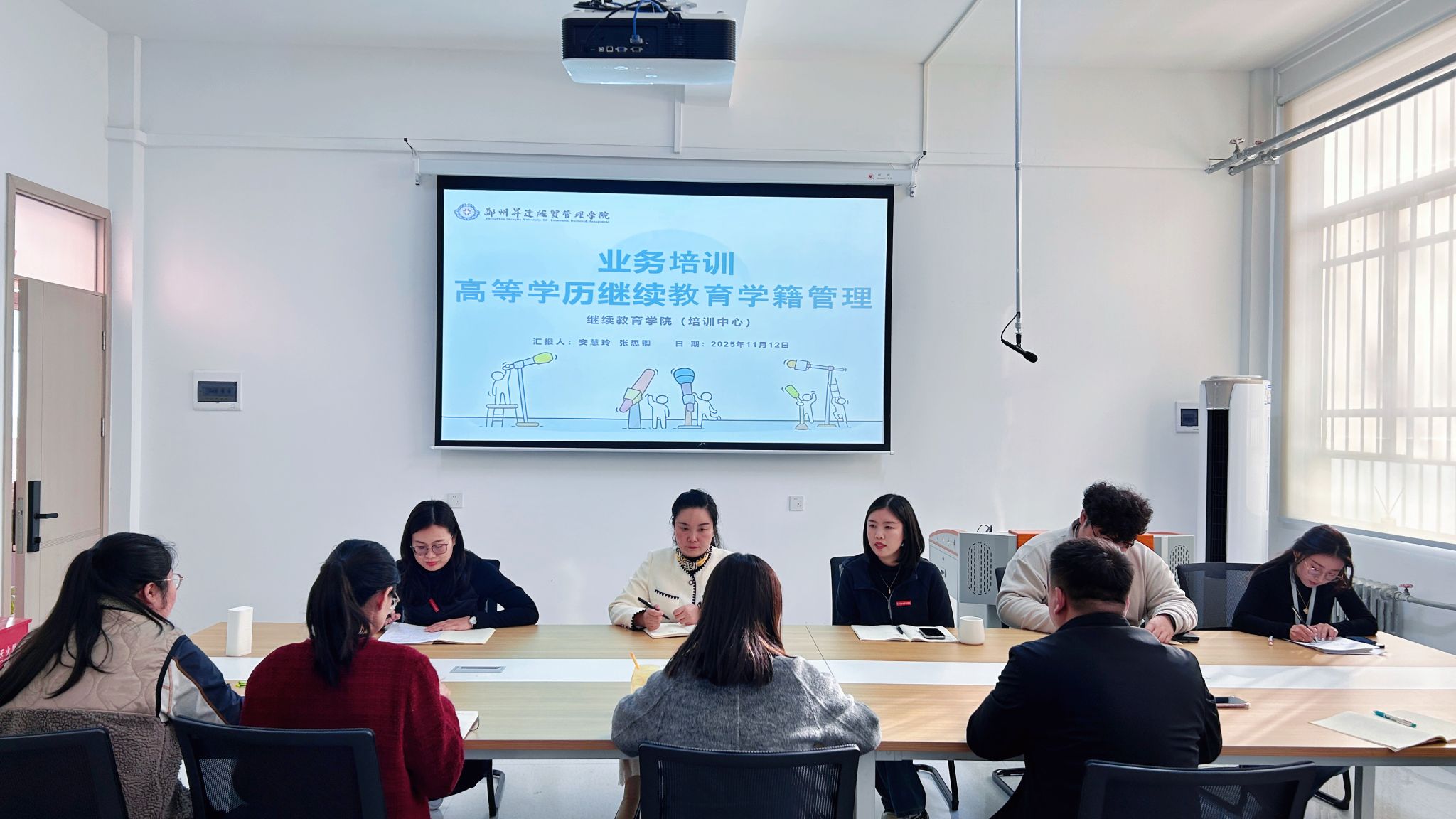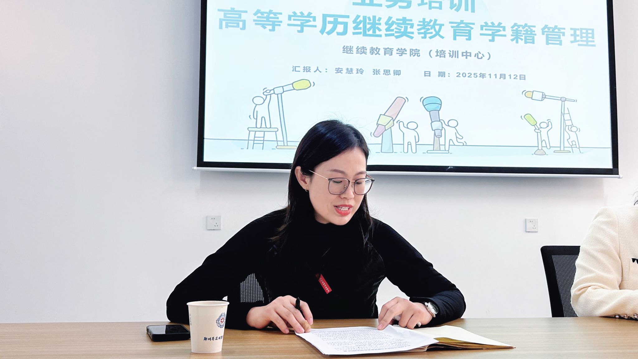 11月12日下午14时,继续教育学院在学院会议室组织召开“高等学历继续教育学籍管理业务培训”专题工作会议。学院副院长吴娟娟教授、办公室主任林方及全体教职工参加会议。会议由参加全省高等学历继续教育学籍管理培训的安慧玲、张思卿两位老师担任主讲。
