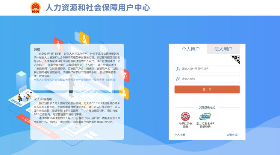 首次使用请先完成“人力资源和社会保障用户中心”实名注册。已注册用户可直接登录。